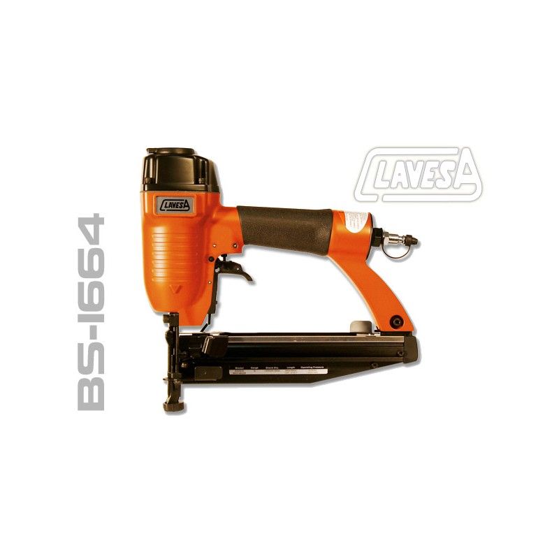 Clavadora de calidad profesional. Morro apertura rápida. Carro metálico con apertura superior. Empujador con muelle de reloj. Fácil visión del nivel de clavos en el cargador. Regulación de profundidad de clavado. Seguro por contacto. Protector de goma en el morro para evitar marcas en la superficie de trabajo. Difusor de aire orientable (360º). Empuñadura de goma, para minimizar el cansancio en trabajos continuados.