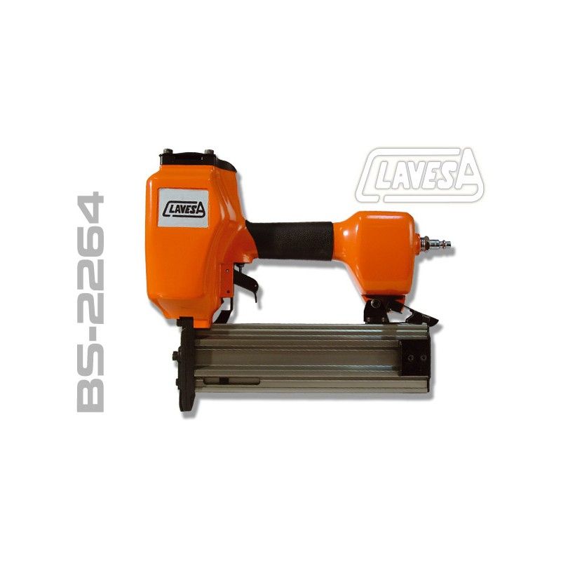 Clavadora de calidad profesional. Cargador de aluminio con guía de acero. Indicador de cargador vacio. Empuñadura de goma para reducir la fatiga del operario en trabajos prolongados. Sistema de seguro por contacto.