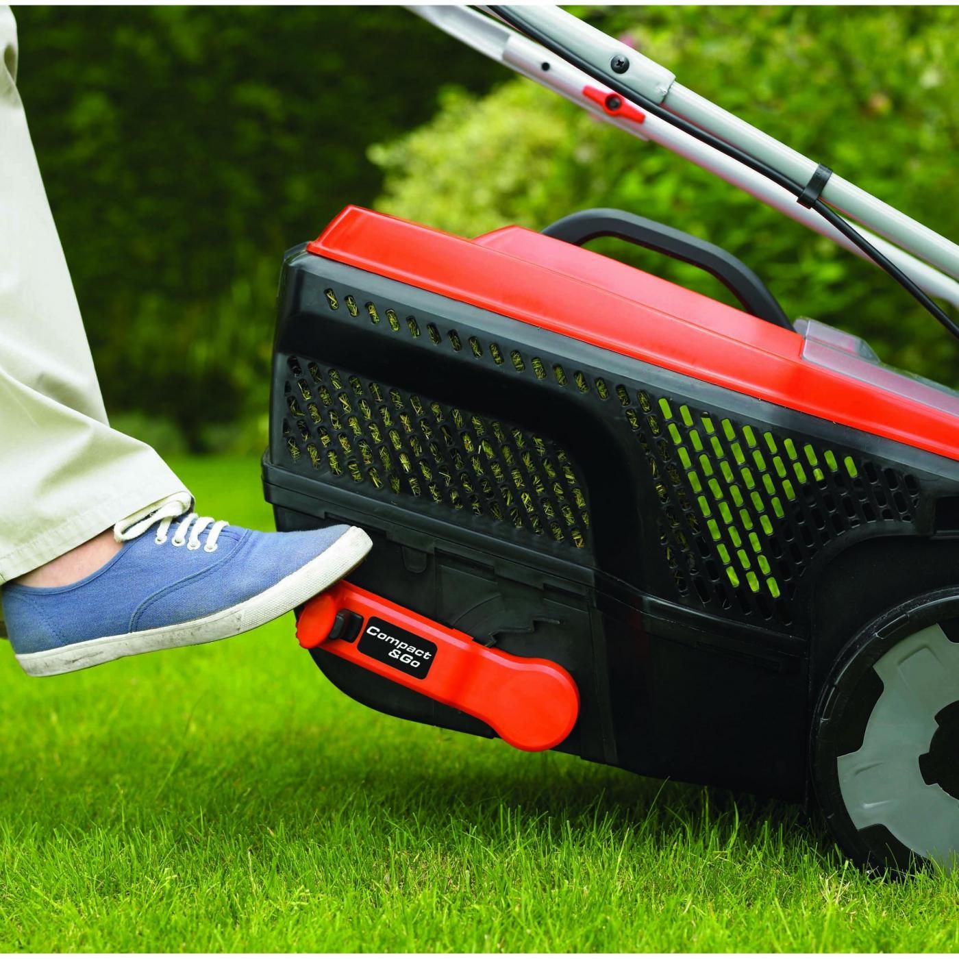 Un cortacésped eléctrico que permite almacenar gran cantidad de hierba reduciendo el número de vaciados gracias a su depósito de gran capacidad pero con tamaño reducido