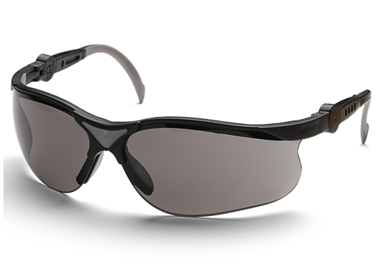 Gafas de protección con cristal tintado en gris con protección UV para mejor visión en la claridad, resistente a las ralladuras, ángulo y longitud del armazón ajustables. Cumplen con los requisitos de la norma EN 166 y Ansi Z87 +.