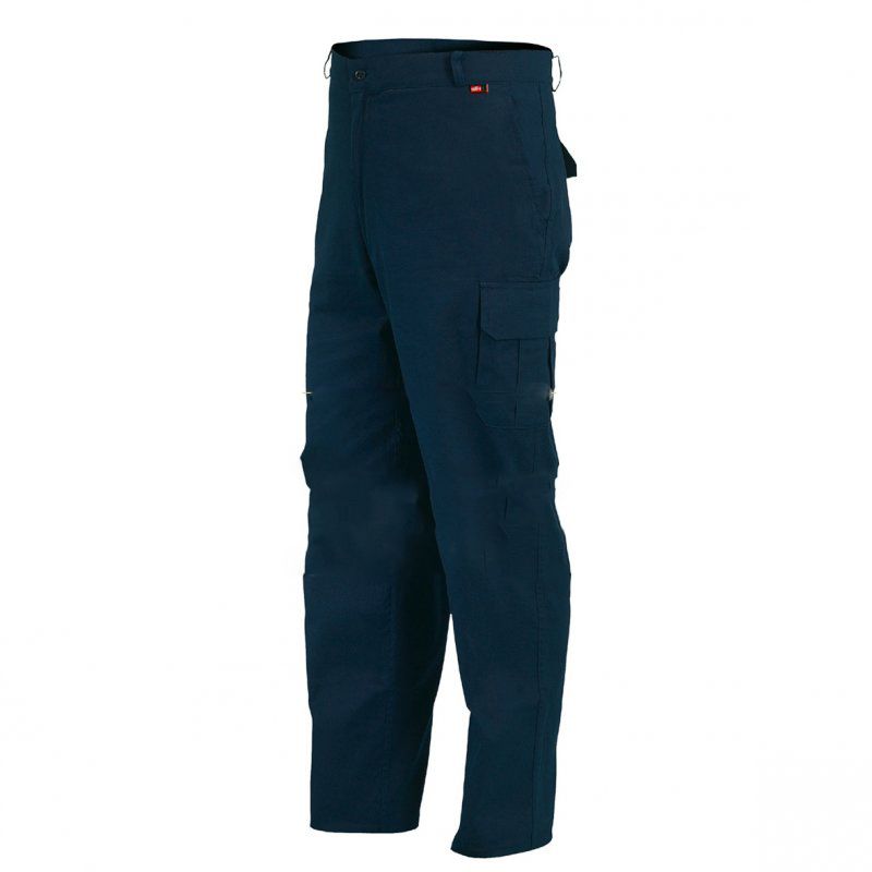 Pantalón Summer de algodón de Industrial Starter, con bolsillos delanteros de corte oblícuo, bolsillo trasero con solapa y cierre de velcro, dos bolsillos laterales de carga con solapa y cierre velcro. Elástico en la parte trasera de la cintura y presillas para cinturón. Compuesto de 100% algodón, gramaje 220gr./m. EN340 CE riesgos mínimos.