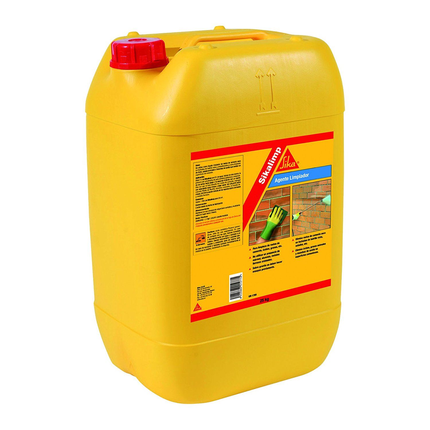 Sikalimp es un líquido limpiador a base de ácidos inorgánicos, incoloro, tóxico y altamente corrosivo. Para limpieza de restos de cemento seco en fachadas de ladrillo visto, embaldosados, Oxido, grasas animales y manchas de aceite que existan en superficies de cemento. Lata 25 kg.